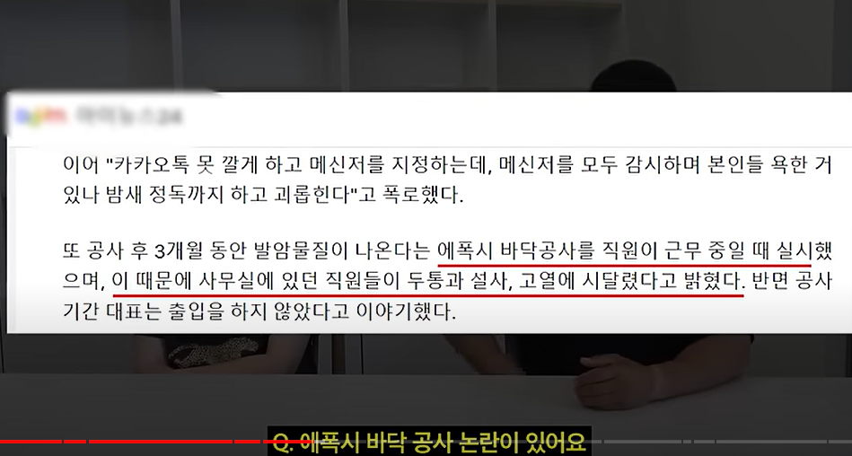 3-2. 바닥 공사 중 냄새 배출로 인한 고충