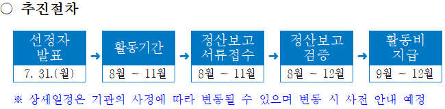 - 활동계획 및 진행기준 : 최소 30만 원에서 최대 40만 원