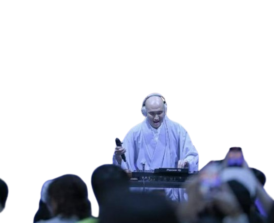 법명 ‘뉴진스님’으로 활동하는 개그맨 윤성호의 일렉트로닉 댄스 뮤직(EDM) 디제잉이 첫날 특별공연으로 대박을 터트렸습니다.