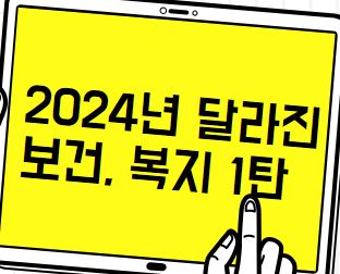 2024년 1월 1일부터는 보건, 복지 제도가 많이 달라지게 됩니다. 다음글에서는 국민기초생활보장제도 지원기준 대폭 확대, 민간·가정 어린이집의 안정적인 운영 지원을 위해 ‘영아반 인센티브’ 시행, 의료급여 부양의무자 기준 완화에 대해서 알아보도록 하겠습니다.