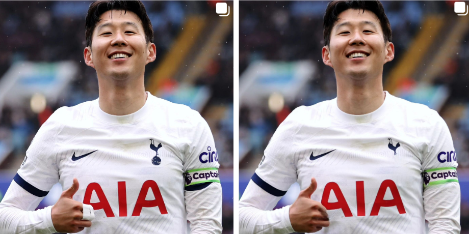 손흥민 선수의 사진 중 5군데 틀린 그림을 찾아보셔요!