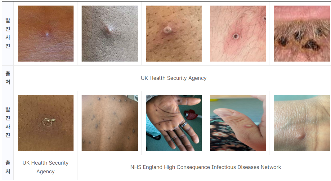 엠폭스는 수포성 발진으로 시작되어 급성 발열, 두통 등을 동반합니다.