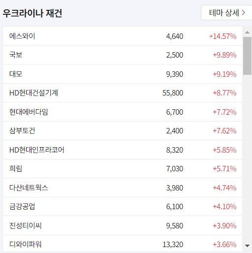 3) 러시아-우크라이나 종전 협상 기대에 건설 및 건설기계 업종이 상승했습니다.