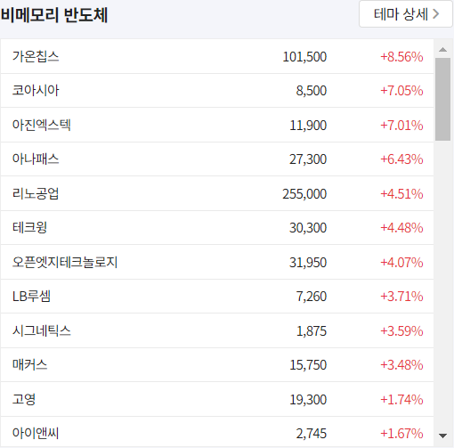 다만, 일부 반도체 소부장 업종은 상승한 점이 특징적이었습니다.