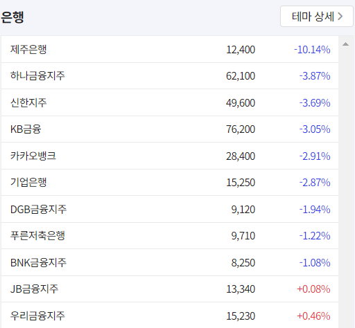 특히 그동안 시장 상승을 주도했던 금융, 지주사, 자동차 등 밸류업 관련주들이 약세를 보였습니다.