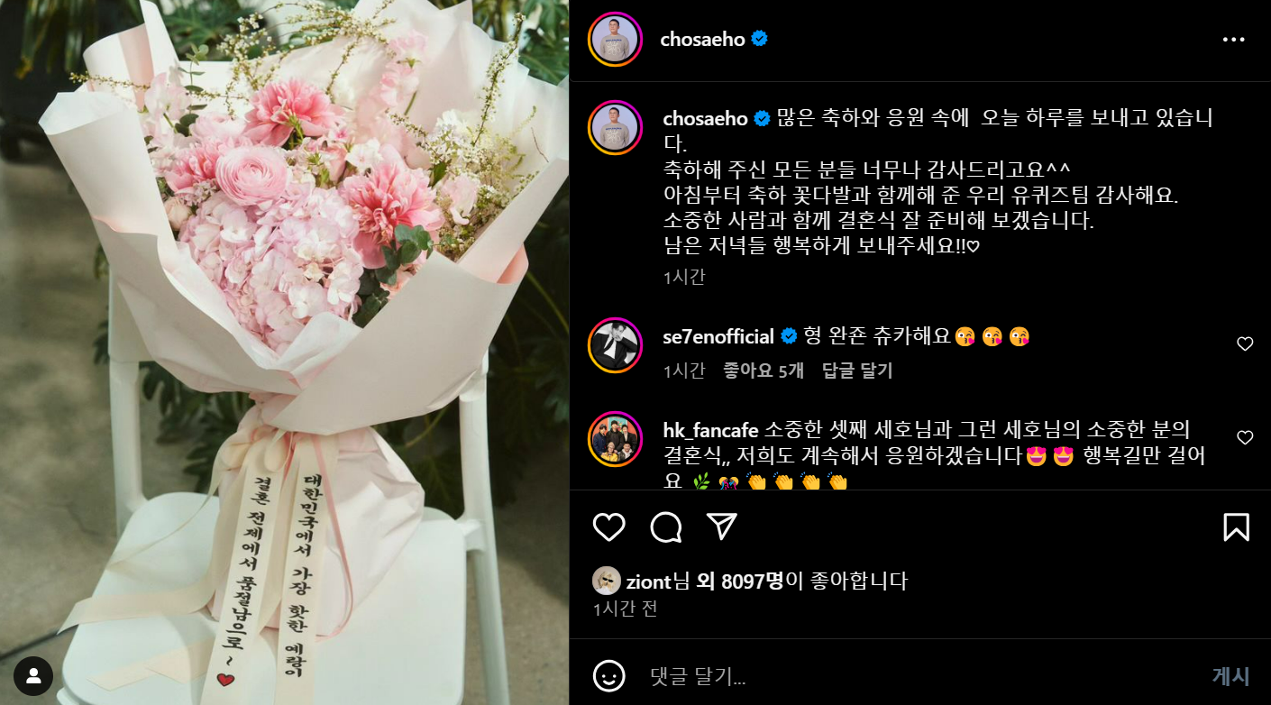 이외에도 많은 동료와 팬들이 조세호의 결혼을 축하하며 따뜻한 메시지를 전했다.