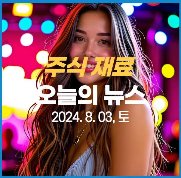 2024년 8월 3일 토, 주식 재료 오늘의 뉴스입니다. 다음글에서는 일본 증시, 경기 침체 우려와 엔화 강세로 급락, 롯데웰푸드, 2분기 영업이익 대폭 개선, 유럽연합, 인공지능 규제법 발효에 대해서 알아보도록 하겠습니다.