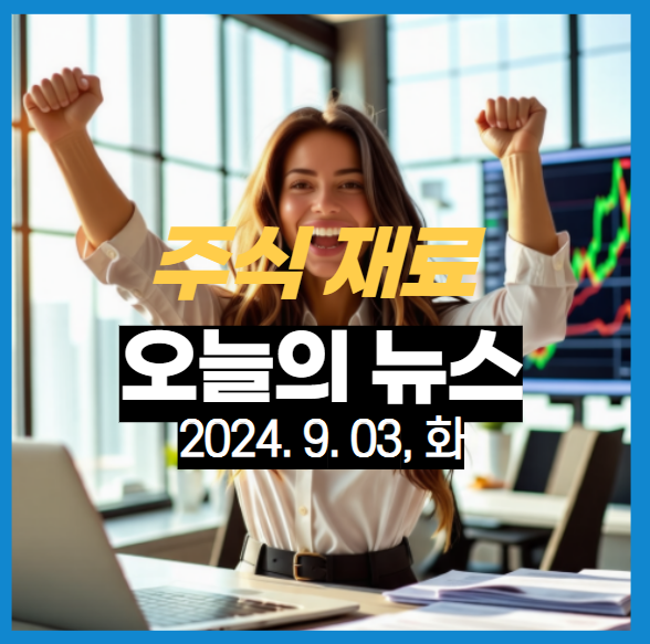2024년 9월 3일 화, 주식 재료 오늘의 뉴스입니다. 다음글에서는 8월 전력수요, 역대 최고치 경신, 8월 아파트 공급실적률, 71%로 상승, 5대 은행 주담대, 8월 들어 7조 3천억 원 증가에 대해서 알아보도록 하겠습니다.