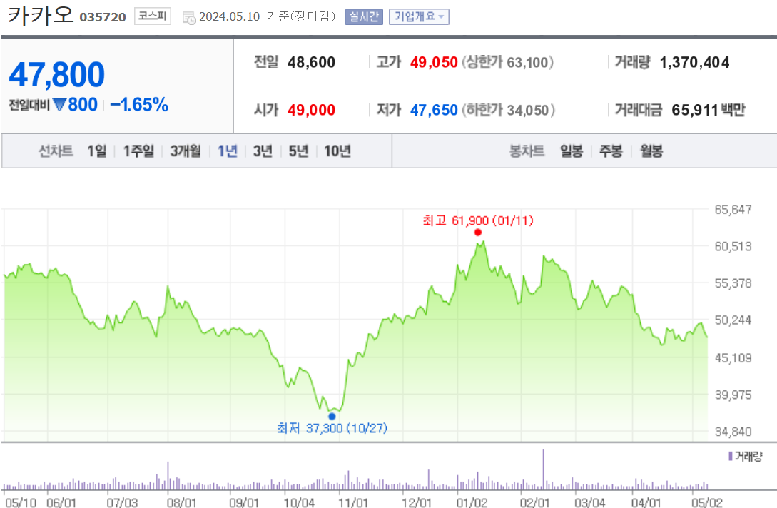 - AI 서비스 개발 가속화를 통해 미래 성장동력 확보 및 경쟁력 제고 카카오는 이번 1분기 실적 반등을 통해 데이터센터 화재 사태를 극복하고 사업 포트폴리오를 강화하는 모습을 보였습니다. 특히 AI 기술 확보를 통한 미래 성장동력 확보에 주력하고 있어, 향후 카카오의 지속적인 성장이 기대됩니다.