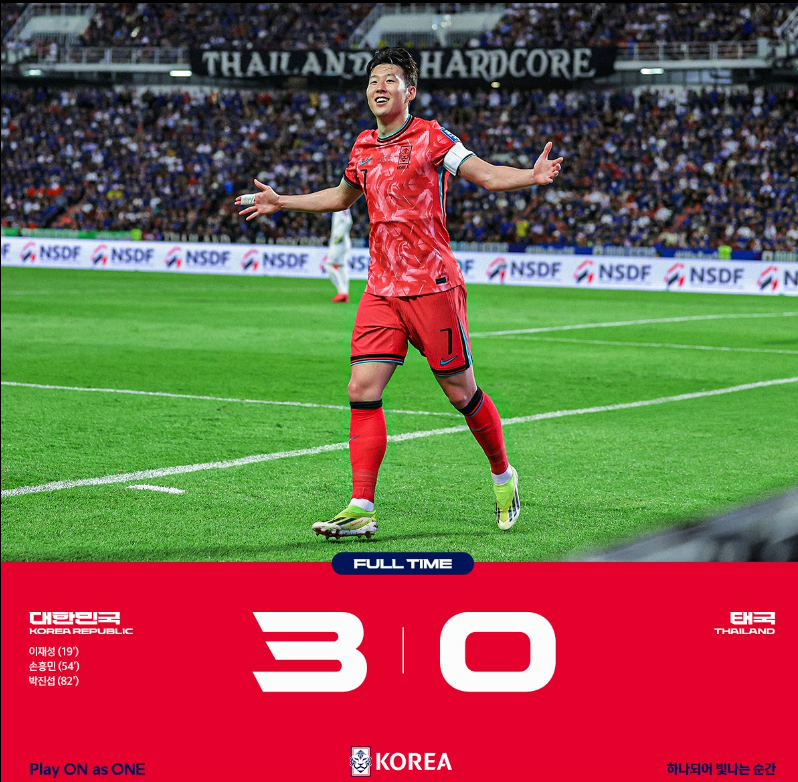 태국 방콕의 라자망갈라 스타디움에서 열린 FIFA 2026 북중미 월드컵 아시아 2차 예선에서 한국은 태국을 상대로 3-0으로 승리하며 C조 1위를 굳건히 했다.