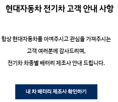 현대차는 13종의 전기차에 탑재된 배터리 제조사를 홈페이지를 통해 공개했다.