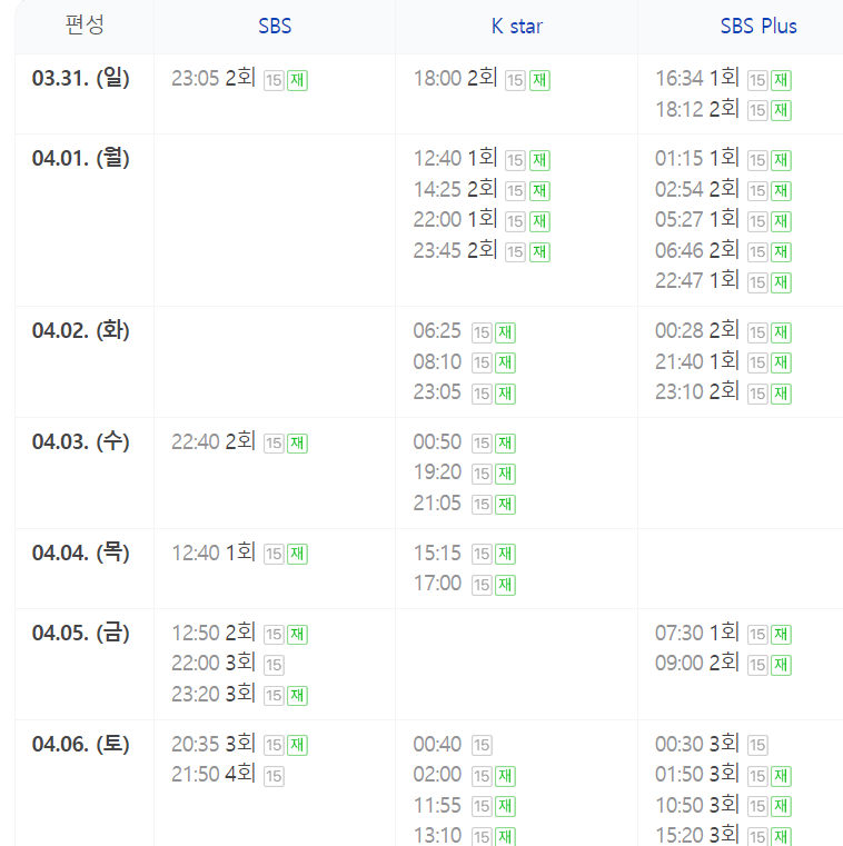 4) 방송채널 : SBS TV, SBS Plus, K STAR